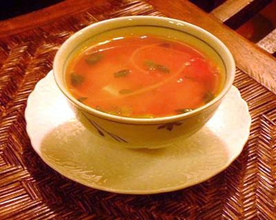◆鍋に油を少量入れ、トマトをざっと炒め、スープをさす
