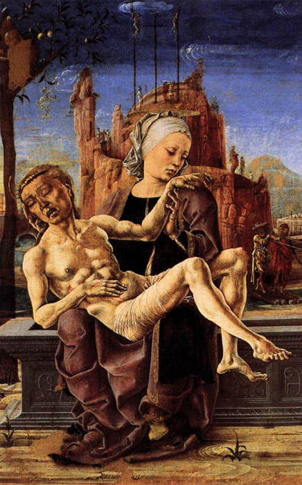 ボローニャとフェラーラでは、ミケランジェロの筋肉の魅力とは全く異なった意味の膨らんだ肉と角張った節に執着する、あのコシメ・ツーラとフランチェスコ・デル・コッサの異様な絵を見てきた。男も女も同じような歪んだ、節くれだった、奇妙に分けられた筋肉で肉付けされた、これまた奇妙に悪意を底に秘めたように伏し目がちの眼を持った姿に描かれている。特に今回、彼らが女性を描いたときの魅力に気がついた。何か皆が名々何かをたくらんでいるように見える。実に魅力的である。