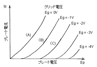 | 3極管の回路のプレート電圧Epとプレート電流Ip |