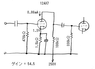 | ロードラインで設計した12AX7電圧増幅回路 |