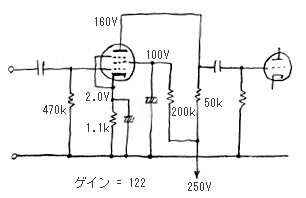 オーディオアンプの電圧増幅は3極管が主流だが、5極管も、もちろん使われる。5極管の方が、電圧増幅率を大きく取れ、また、出力できる最大電圧も3極管より大きく取れるので、こういった性質を生かした回路構成にすることもできる。