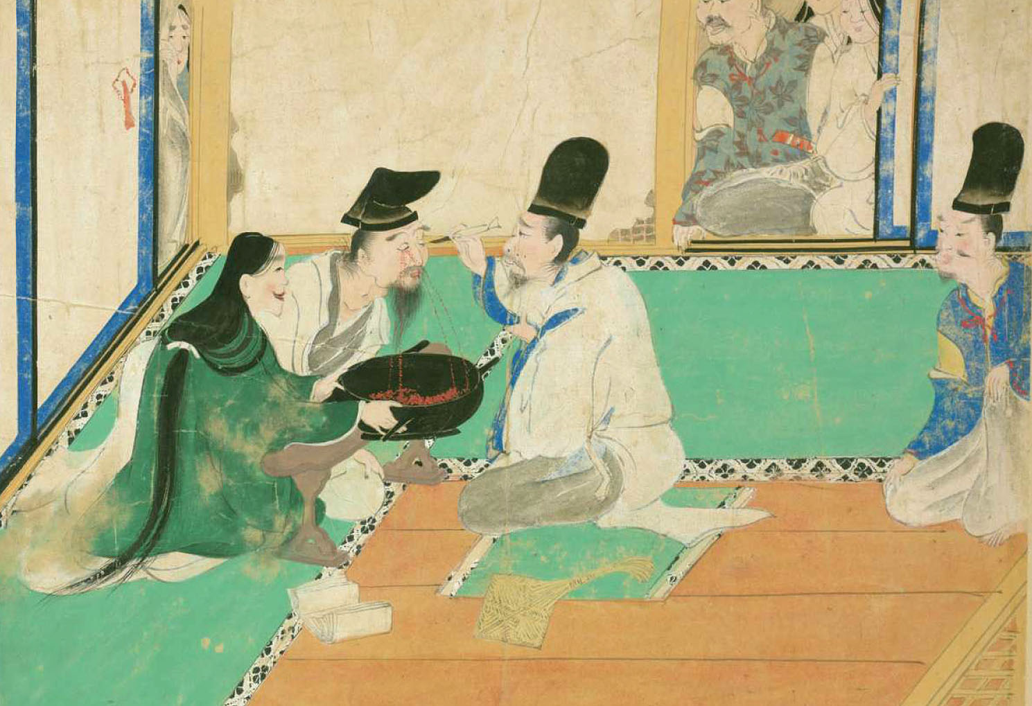 ところが実はこの医者はにせ医者で、これはにせ手術をしているところなのである。詞書には