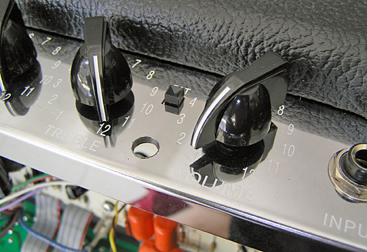 まずはプレゼンスである。前々回紹介したBillmさんのサイトにあるように、前面パネルのFATスイッチの下にあるスペースに穴を開けてそこにボリュームを取り付ける。スペースは狭いので、使うボリュームも小型のものを使う。今回は秋葉で探した次のアルプスの小VRを使った。