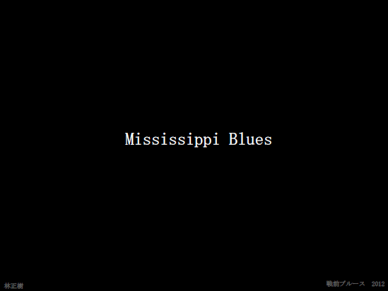 C O N T E N T はじめに 本日の内容 ブルース以前 ブルースが生まれたのは 1800年の終わりごろ ブルース以前の黒人音楽 ワークソング フィールド・ハラー バラード 初期のジャズ、ラグタイム、ゴスペル ブルース以前の音楽からブルースへ ブルースの誕生 1900年のミシシッピーにて 記録の上での最初のブルース Mean Black Cat Blues 形式としてのブルース ブルースのコードと歌の形式 ブルースのメロディー形式 意味としてのブルース 戦前ブルース ブルースと地域 ミシシッピー・ブルース Charlie Patton 1 Charlie Patton 2 Willie Brown Son House テキサス・ブルース Blind Lemon Jefferson Texas Alexander + Lonnie Johnson Blind Willie Johnson イースト・コースト・ブルース Blind Willie McTell Blind Blake And more... ブルースいろいろ Robert Johnson 1 Robert Johnson 2 Robert Johnson 3 終わり 戻る
