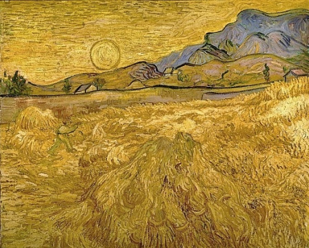 しかし、何回目だったろうか、一枚の絵がようやく僕の眼に止まった。「刈取る人のいる麦畑」という題の付いた真黄色に塗られた絵だった。無論この有名な絵は、画集で幾度も飽きる程見て知っていたのだが、いま自分の目の前にある絵は、今まで見ていた絵とは、似ても似つかない絵であることに僕は気が付いた。それまで僕は一体この絵を見て何を感じていたのか──気違いじみた黄色の緊張、恐ろしい厚塗りに込められた情熱、渦巻く筆触の荒々しさ。しかしそんな大仰で騒々しいものはどこを探しても見当たらない。画布の中に広がっていたのは、絶対的な、静寂だった。それまで僕が見たことも感じたこともない、恐るべき静けさだった。ただ僕の心は、硫黄と鉛白にバラ色を混ぜ込んだ、奥行きも遠近法もない、ゆっくりと流れる黄金色の画布の中に、死んだように溶け入ってしまったのだ。この時僕は、初めて、ヴィンセント・ヴァン・ゴッホという名の画家の描いた絵画を見たのだと思う。それまで僕は、ゴッホという人間と、彼の手に成る絵画を混同し、画布に盛られた絵具の厚さが彼の情熱を、筆触の勢いが彼の感情を、どぎつい色彩が彼の感動を、僕にたたきつけてよこすだろうと、自分勝手に決め込んでいたのだ。しかし、このたった一枚の絵によって、僕は自分の考えが間違っていた事を、徹底的に納得させられたのだった。それから後、彼の数々の絵画は、僕に、それまで見た事もないような魅力を明かし始めた。それは全く新しい経験だった。複製で見飽きる程見ていた絵が、今では僕に、今までは想像もできなかった言葉で語りかけてきた──それは、色と線という、画家の扱う手段の純潔を、僕に告げたのだ。