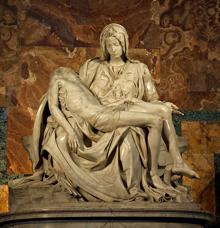 ミケランジェロのあの筋肉に対する執着は一体どこから来るのだろう。そういえば今回は見れなかったが、彼の手になるピエタの死せるキリストのふくらはぎと、腋からだらりと垂れた腕に付けられた肉は内からの力を全く失った柔らかい肉であった。それはマリアの腕に支えられてその形を保っているだけで、まさに柔らかい肉体である。しかし何故か死体の感触はなく、むしろ身を任せた女性の体のように見える。やっぱり本物が見たい、残念だ。