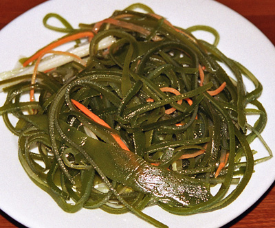 そして昆布の細切りのあえもの。こちらも単に塩味の薄味に味つけただけの、日本にもよくありそうなものだった。