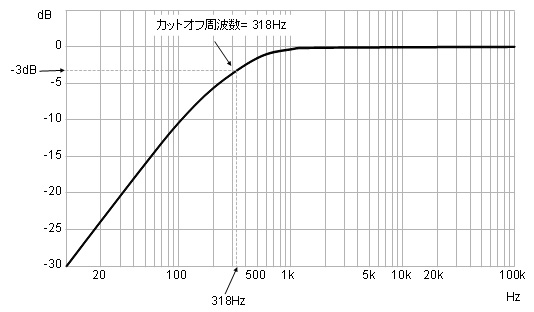 となり、318Hzのときに-3dB減衰する。上図の特性は、このときのものである。