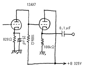あと、確実に役に立っている使い方もある。現代型のアンプで「センド/リターン」の端子が付いているアンプの場合、センド端子への信号送り出しのところに、このカソードフォロアを使うことが多い。つまり、低いインピーダンスで信号を送り出してやるわけだ。これは、センド端子にシールドケーブルを挿し、それを長々と引き回し、エフェクターの入力につなぐなどということをしたとき、シールドケーブルの持つ容量のせいで高域の周波数成分が落ちる(ココを参照)。この高域減衰は、送り出しのインピーダンスが低ければ低いほど少ないので、高域落ちを防ぐことができる。これなどはまことにリーズナブルな使い方である。