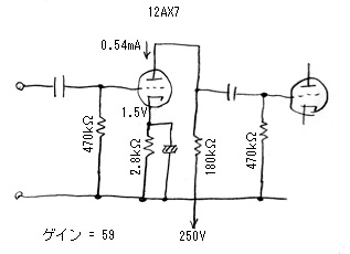 | ロードラインで設計した12AX7電圧増幅回路 |