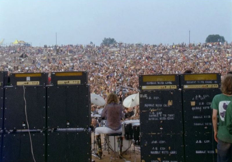 | マーシャルスタックの背面は閉じていて密閉型。これはジミ・ヘンドリックスのライブを後ろから見た写真 |
