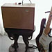 フェンダー系ギターアンプの自作 6L6シングルのFender系ギターアンプ回路を、オークションで落とした校内放送用スピーカーに組み込んだもの。 |